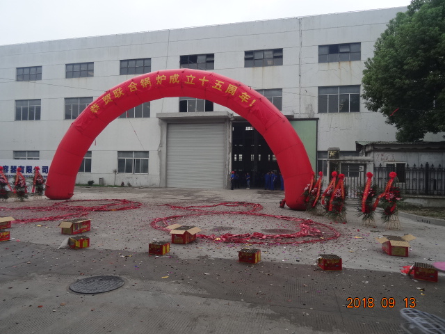 On September 13th, 2018, Union boiler organized a celebration in honor of the company’s 15th anniversary. Mr. Shao Xiaobing, the chief engineer of “State Forestry Planning and Design Institute of Forest Products Industry”, Mr. Hu Guangbin, the secretary-general attended the celebration. Many well-known equipment suppliers and top wood-based panel manufacturers such as Dieffenbacher Shanghai, Suzhou Sufoma and Furen Group also visited our company and attended the celebration.